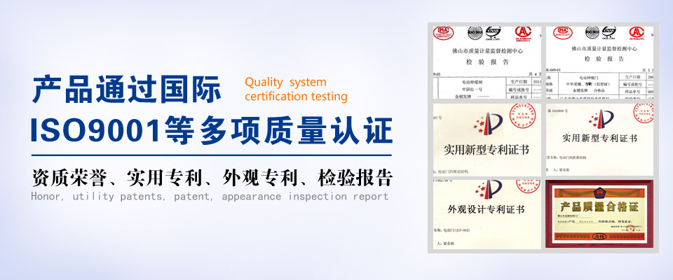 引進(jìn)先進(jìn)的生產(chǎn)設(shè)備和科學(xué)的管理,保證產(chǎn)品質(zhì)量,先后榮獲"實(shí)用專(zhuān)利""外觀(guān)專(zhuān)利"等多項(xiàng)專(zhuān)利及榮譽(yù),累計(jì)抽樣檢驗(yàn)累計(jì)上百項(xiàng),均符合JG/T 154-2003《電動(dòng)伸縮門(mén)圍墻大門(mén)》的標(biāo)準(zhǔn)要求。